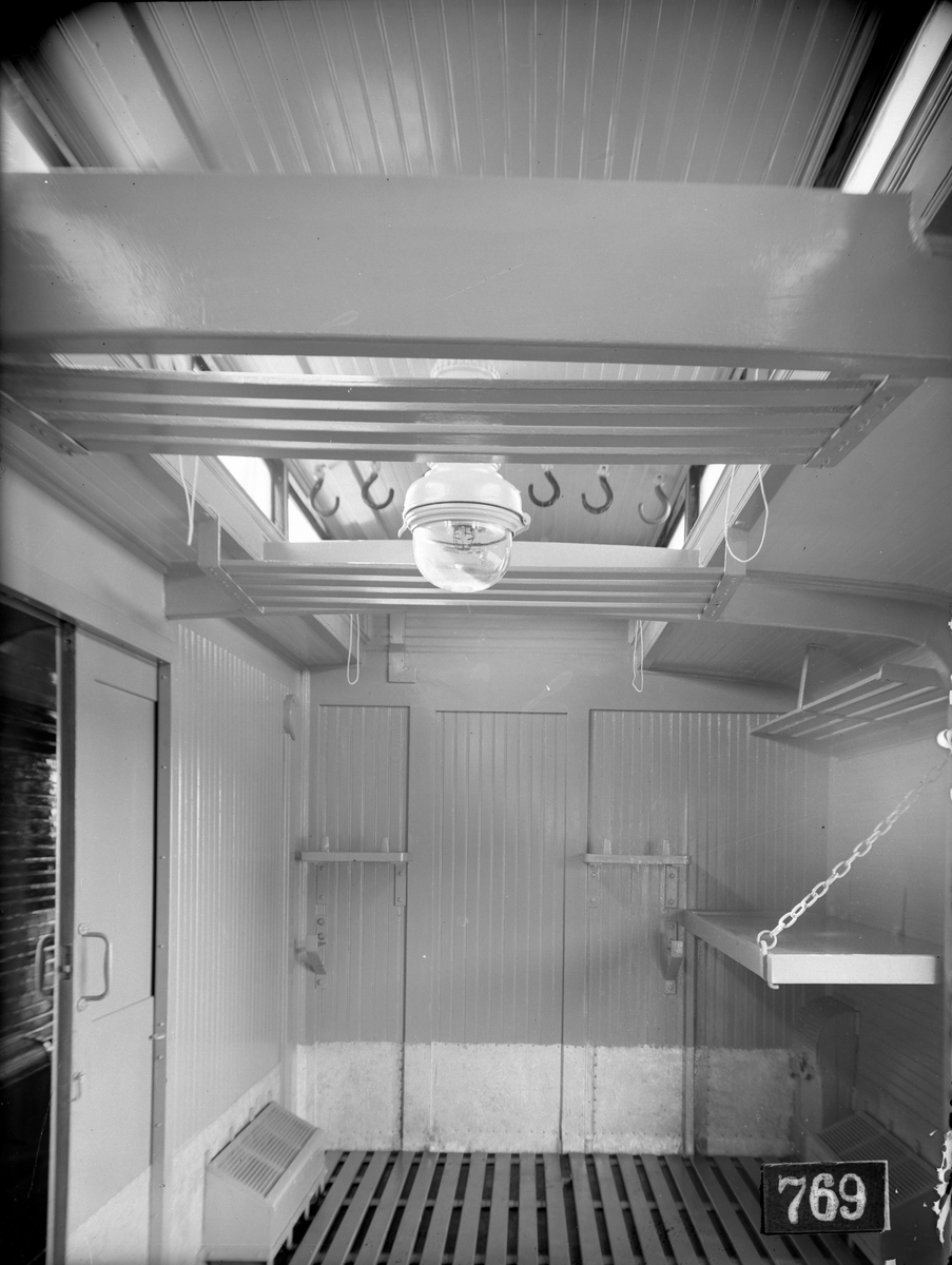 Statens Järnvägar, SJ BFo5 1419. Efter ombyggnad. Resgodsavdelning med cykelkrokar i taket.