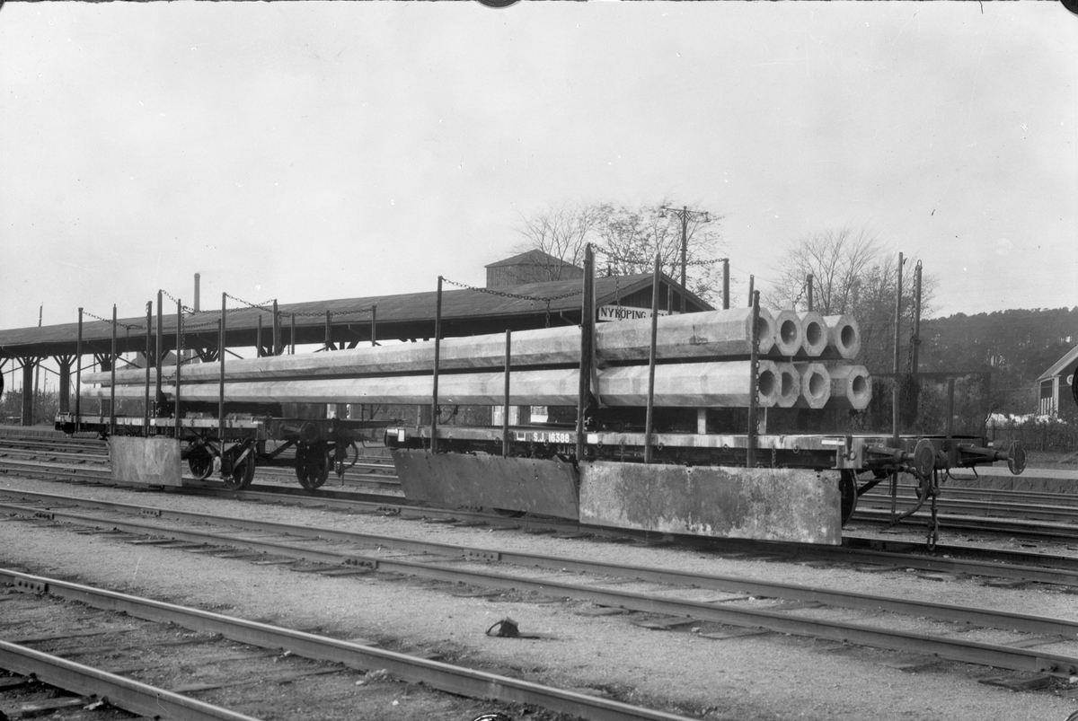 Statens Järnvägar, SJ Os 16388. Öppen godsvagn med stolpar, inåt och utåt fällbara lämmar.