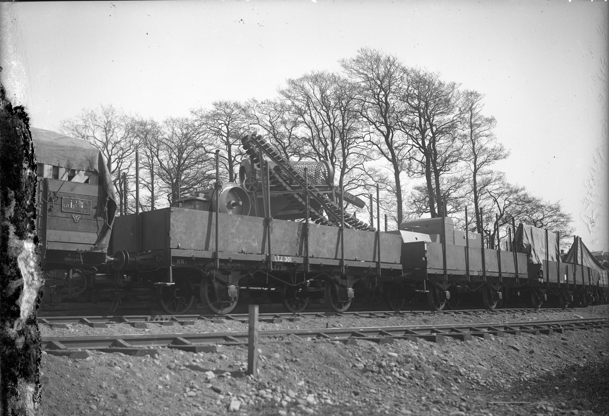 Lund - Trelleborgs Järnväg, LTJ NN3 301, 305 på utställning. Lastade med stenkross- och sorteringsverk av Svedalas tillverkning.