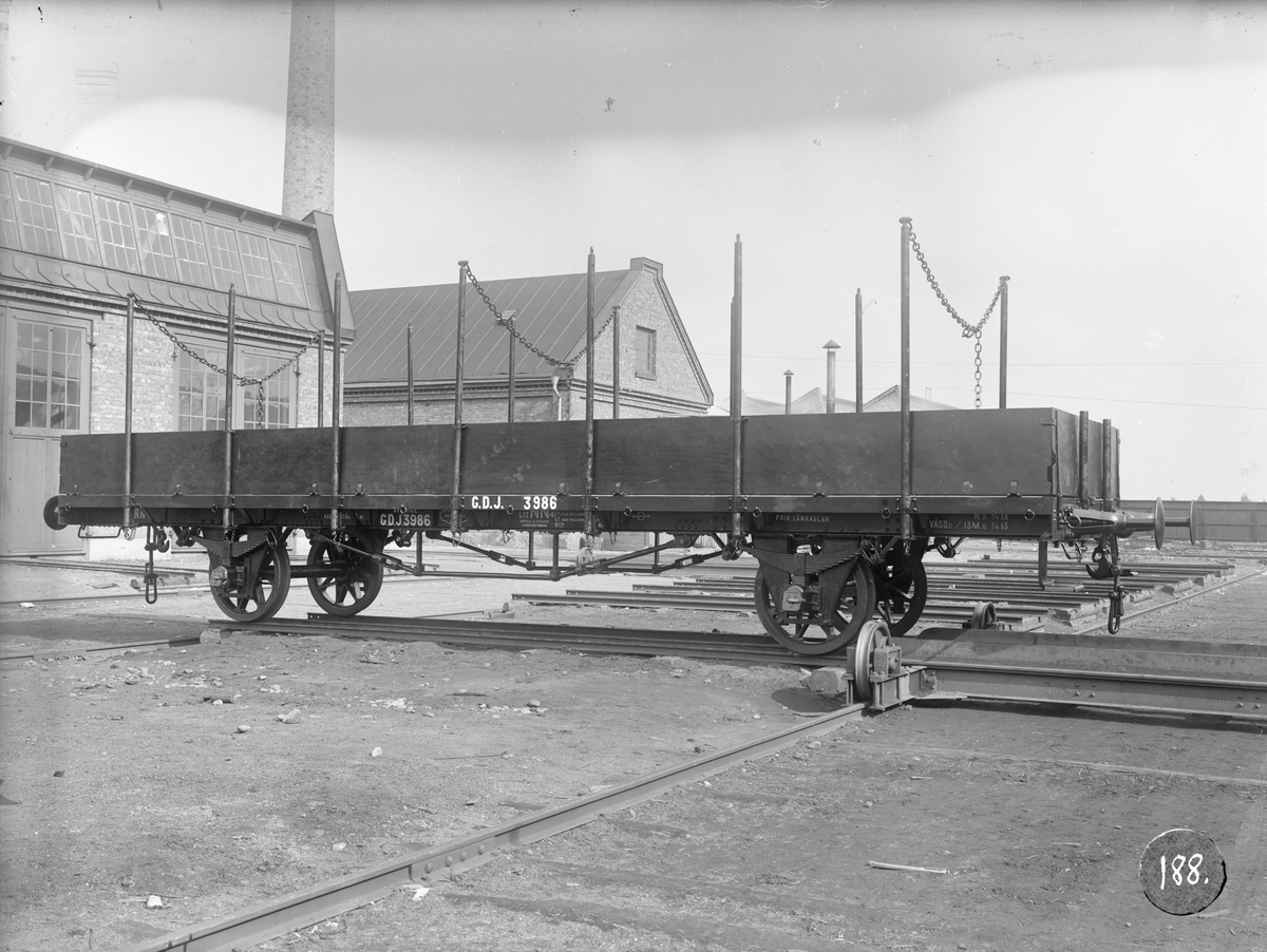 Gävle - Dala Järnväg, GDJ NN4 3986. Stolpvagn med 0,5 m inåt fällbara lämmar som tillåter kolskrov.