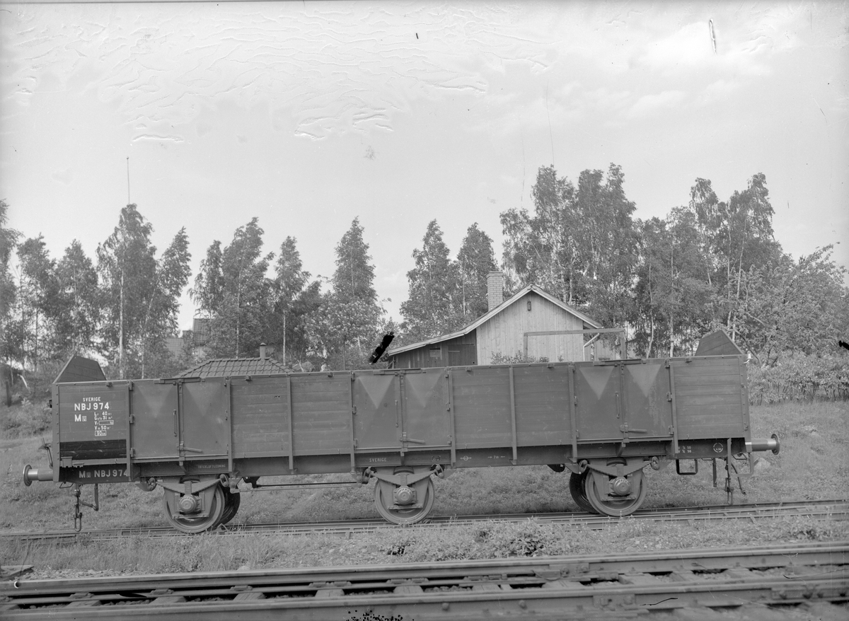 Nora Bergslags Järnväg, NBJ Mu 974. Treaxlig vagn för transport av i första hand järnskrot.