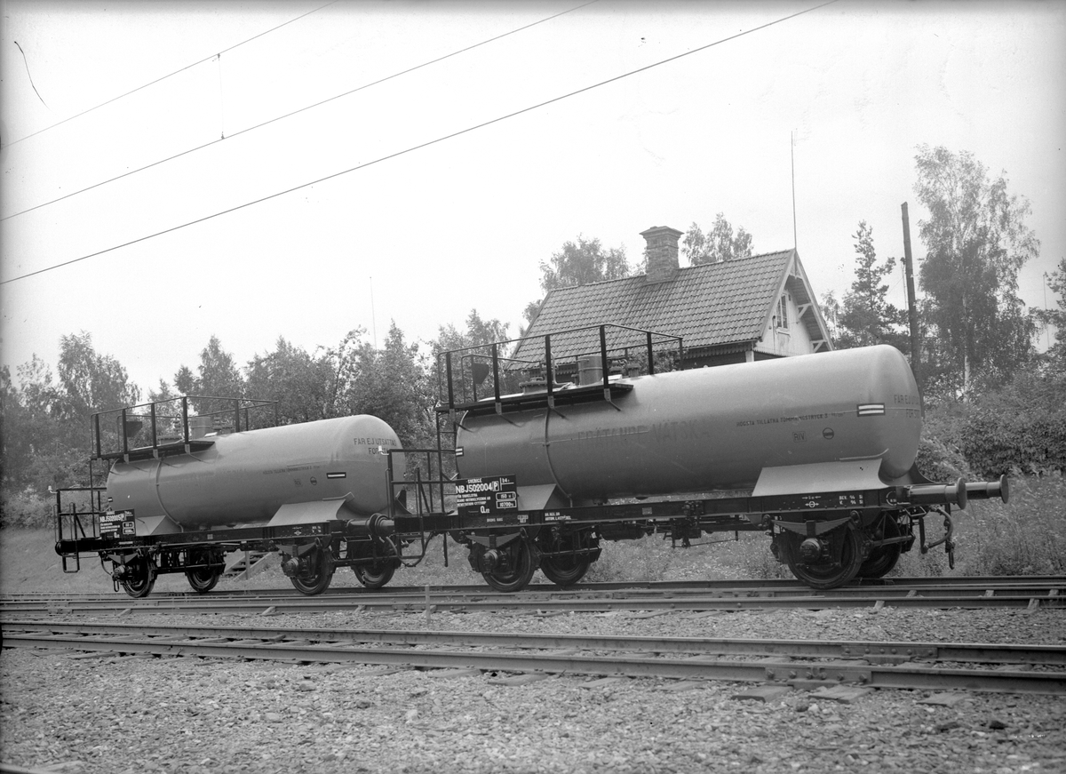 Nora Bergslags Järnväg, NBJ Q12 502004, 502005. Syravagnar med aluminiumtank för salpetersyra.