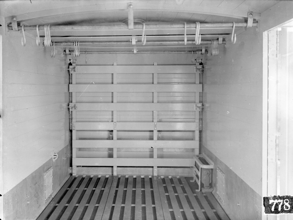 Västergötland - Göteborgs Järnvägar, VGJ Hm 1496. Interiör av vagnen. Aktiebolaget Svenska Järnvägsverkstäderna, ASJ.
