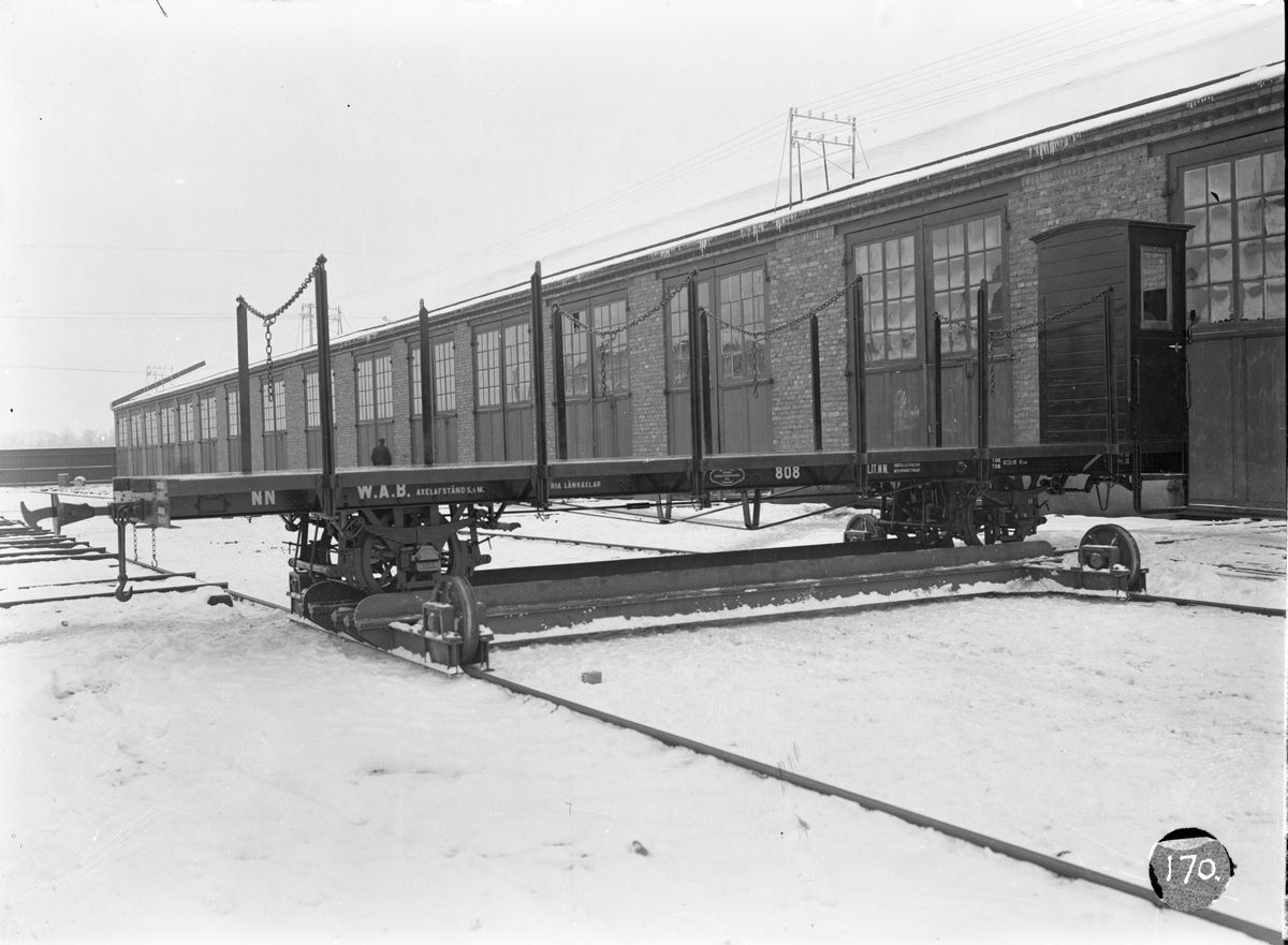 Västervik - Åtvidaberg - Bersbo Järnväg, WÅBJ NN 808. Vagnen står uppställd på en marktravers utanför det ursprungliga plåtslageriet. Aktiebolaget Svenska Järnvägsverkstäderna, ASJ.