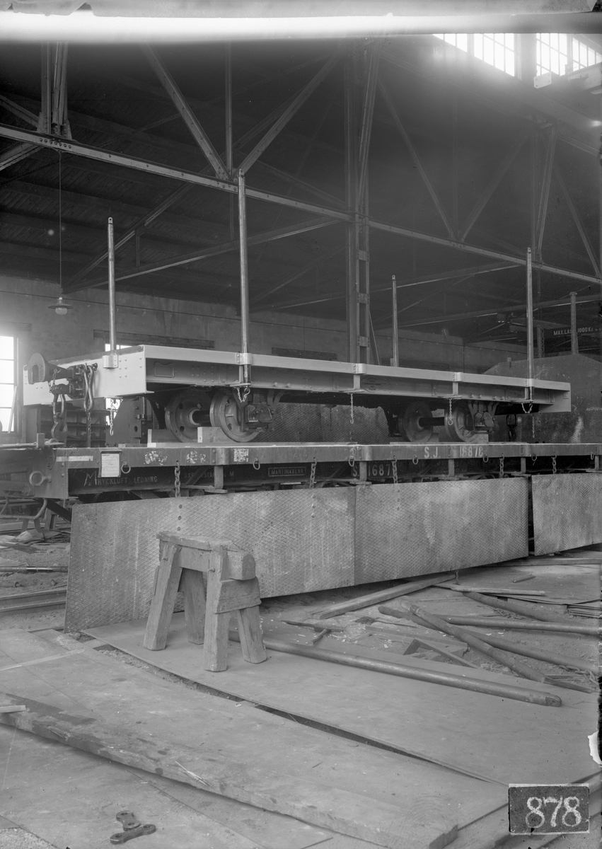 Godsvagn tillverkad för Delary - Strömsnäsbruks Järnväg med littra NN. Tillverkad av Aktiebolaget Svenska Järnvägsverkstäderna, ASJ.
