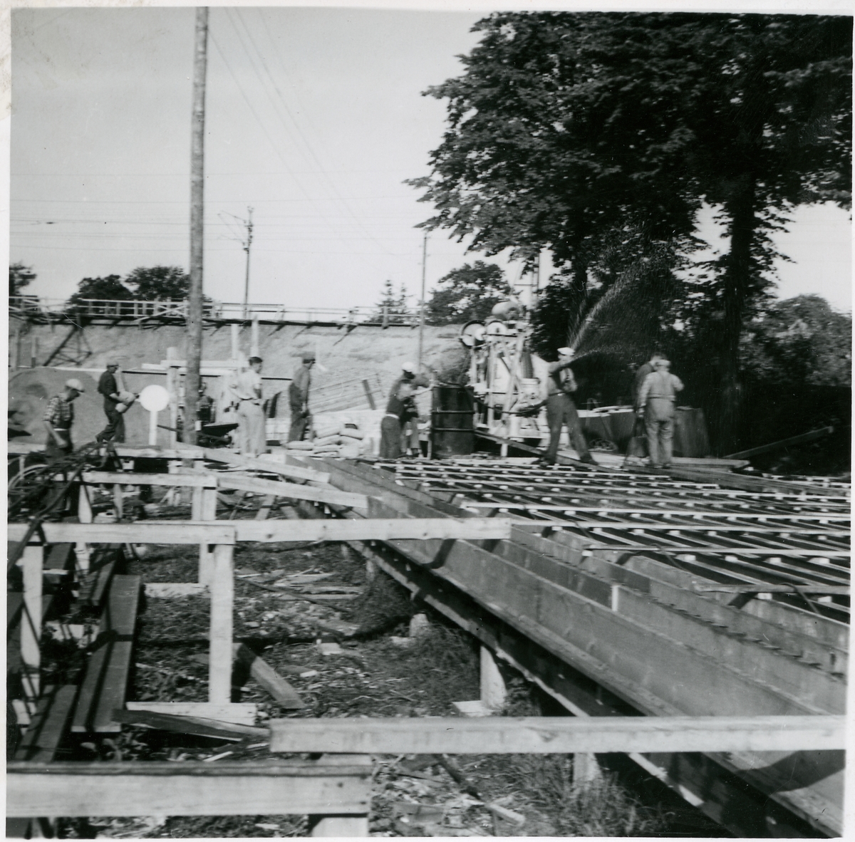 Cementgjutning av pelare till vägportsanläggning, vid Skövde.