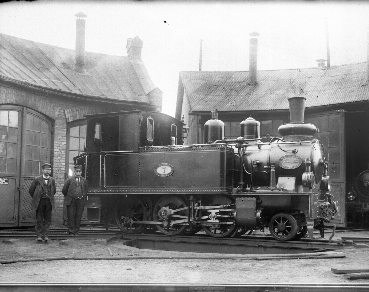 Vikbolandsbanan, VB lok 7. Till vänster lokförare Hj. Pettersson.