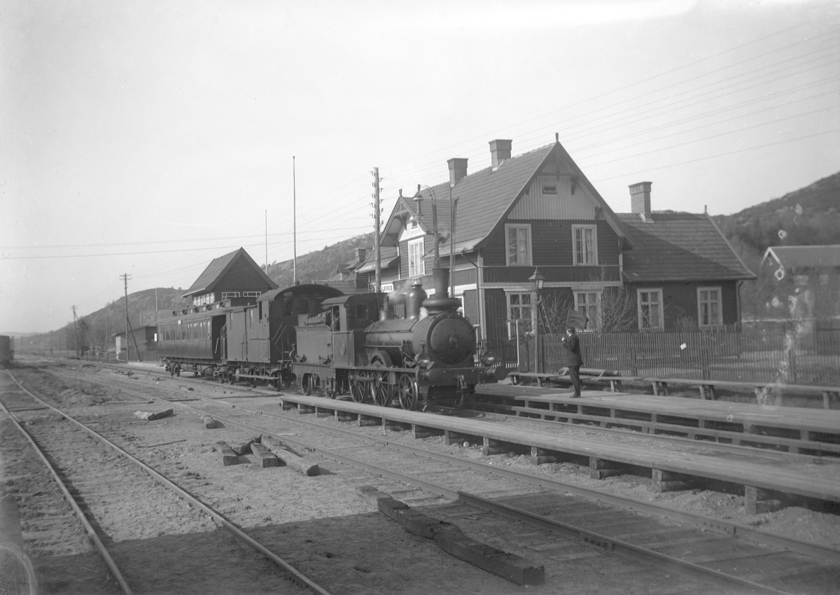 Statens Järnvägar, ånglok SJ VKBa med två vagnar, F1 modell 1886 och Co5modell 1911.