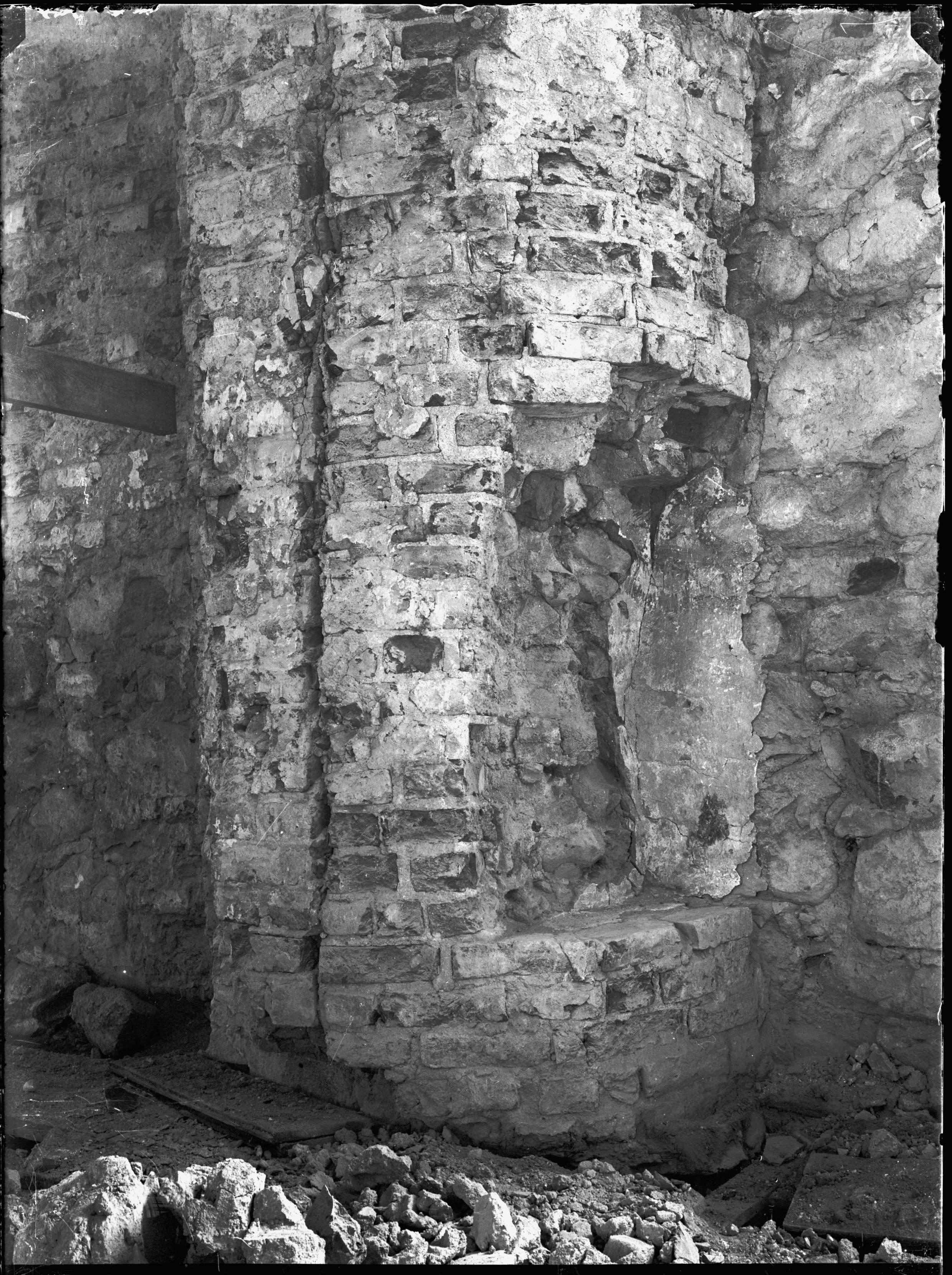Södra tvärskeppets sydöstra hörnpilaster med tillagad del.