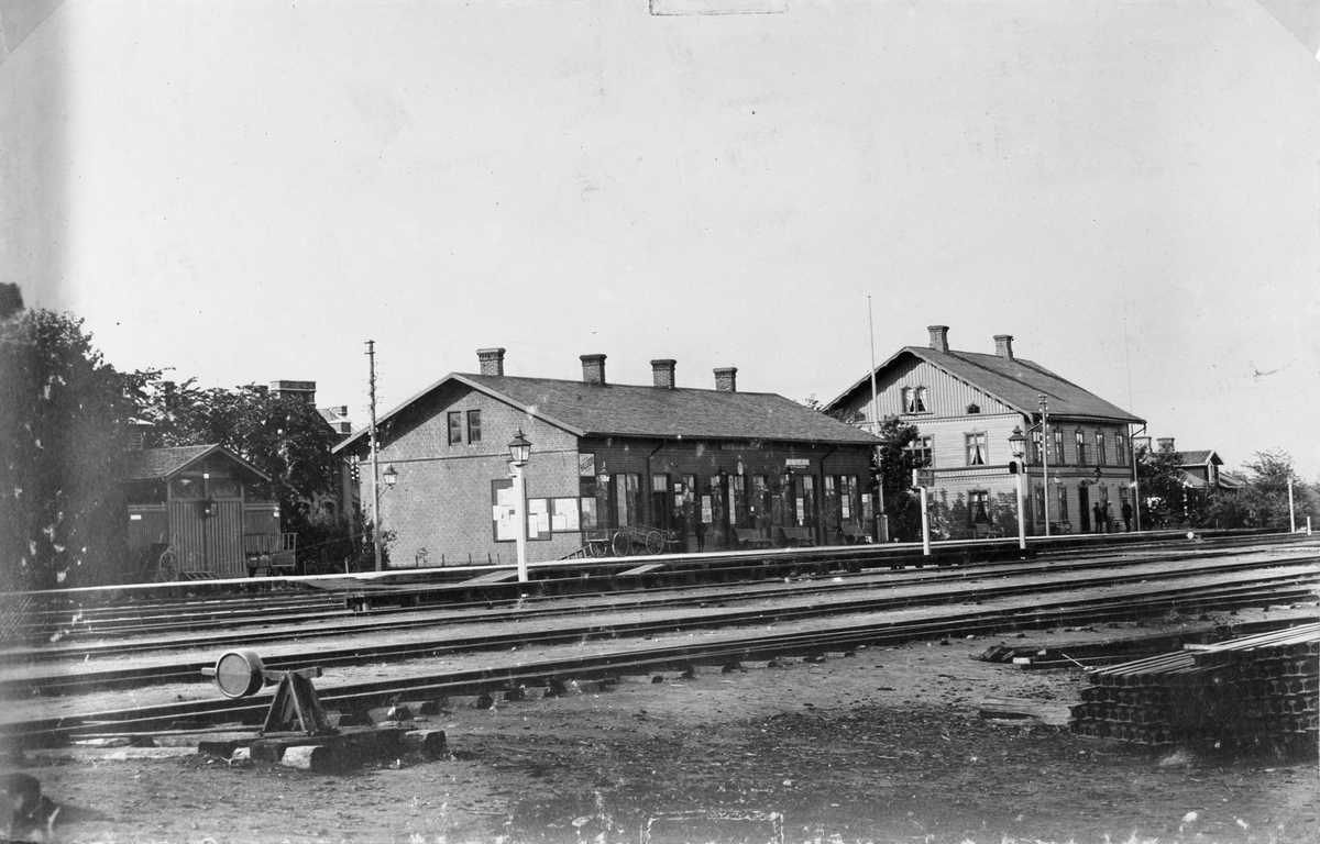 Enligt text på negativet.: "Stationen (på 1880-talet?)"Stenstorp station