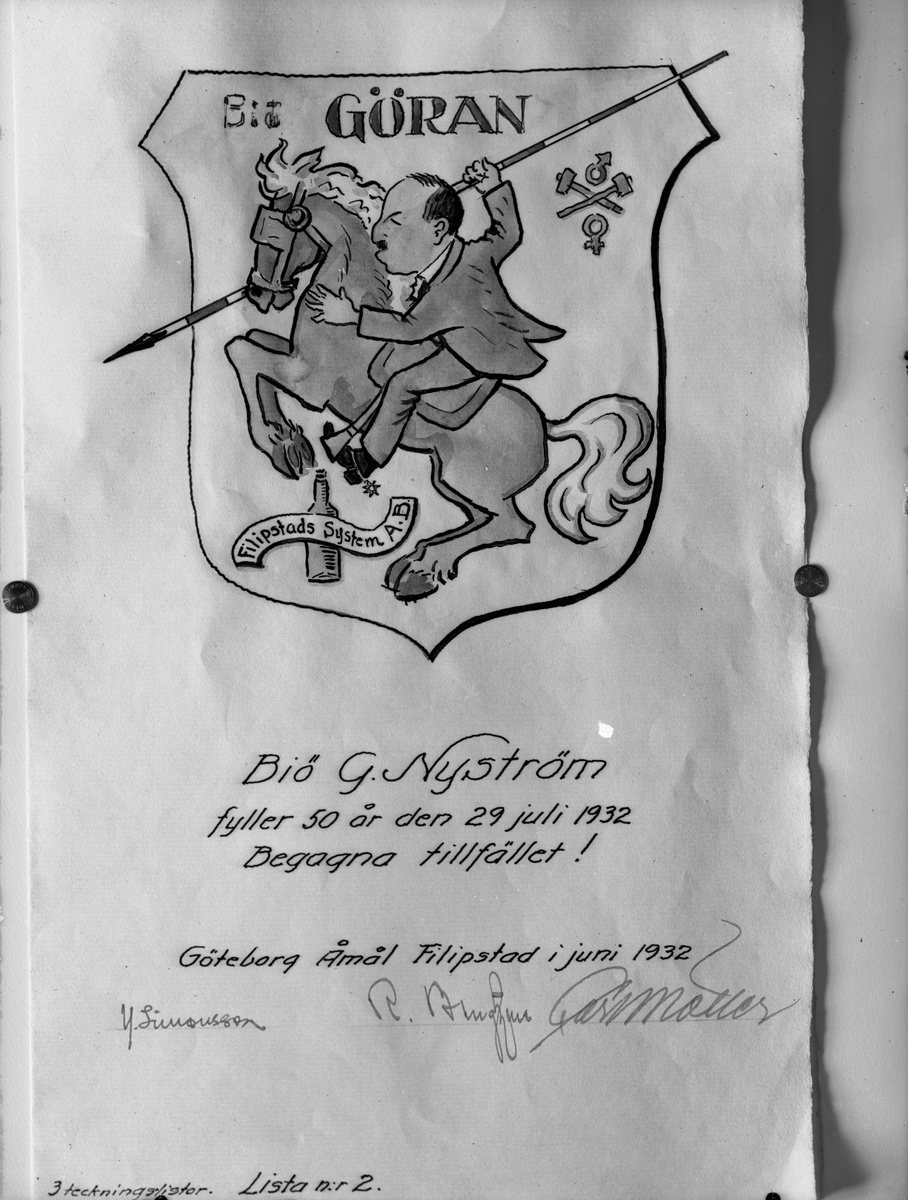 Hyllning Biö , Baningenjör ,G Nyström , omgjort Filipstadsvapen