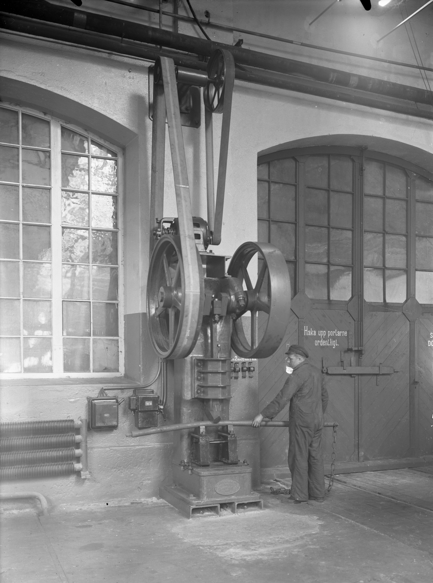 Titel: Verkstadsinteriör Anordning för riktning av spant mm Anordning för riktning av vagnsstolpar
