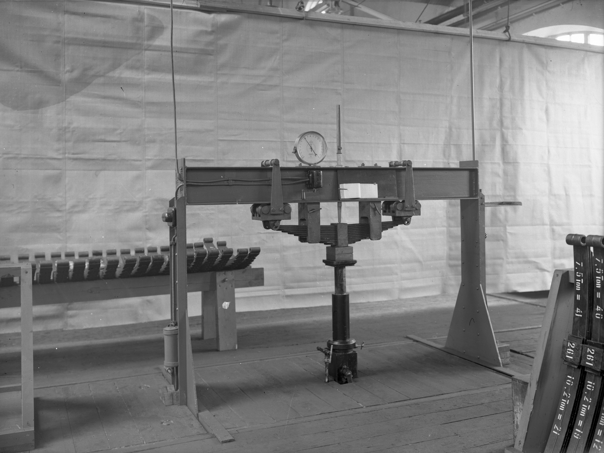Titel: Verkstadsinteriör Anordning för fjäderprovning