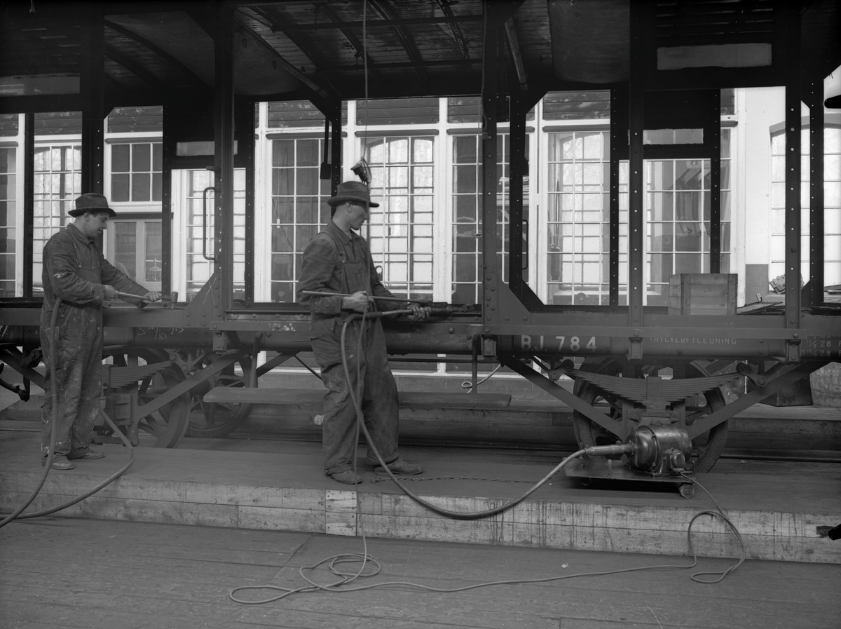 Titel: Verkstadsinteriör Anordning för rosthackning BJ 784