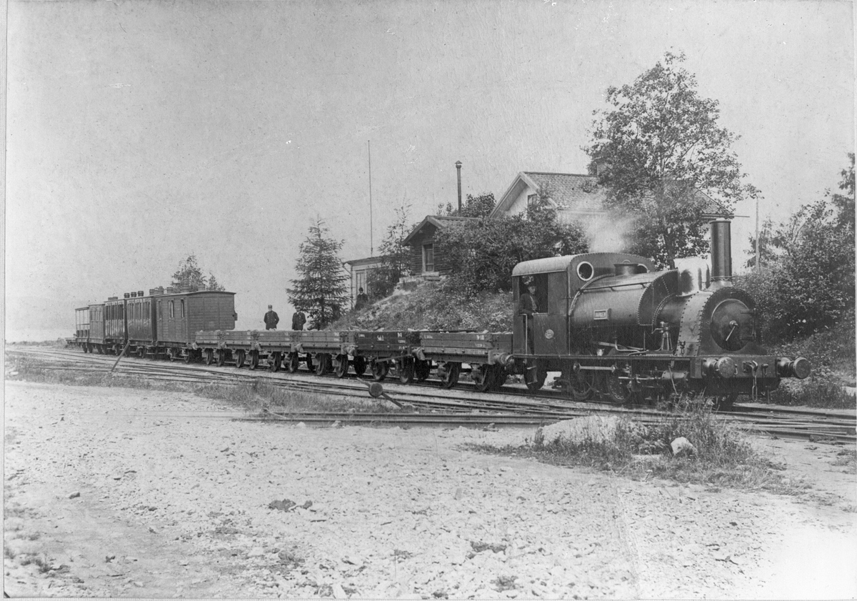 Titel: Wessman - Barkens Järnväg, senare Smedjebackens Järnväg, SmbJ, lok 2 "Barken." Marnäs station senare ändrad till Ludvika.