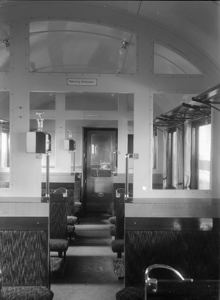Titel: Statens Järnvägar, SJ Co13 2823, interiör med klädda soffor. Kockums.