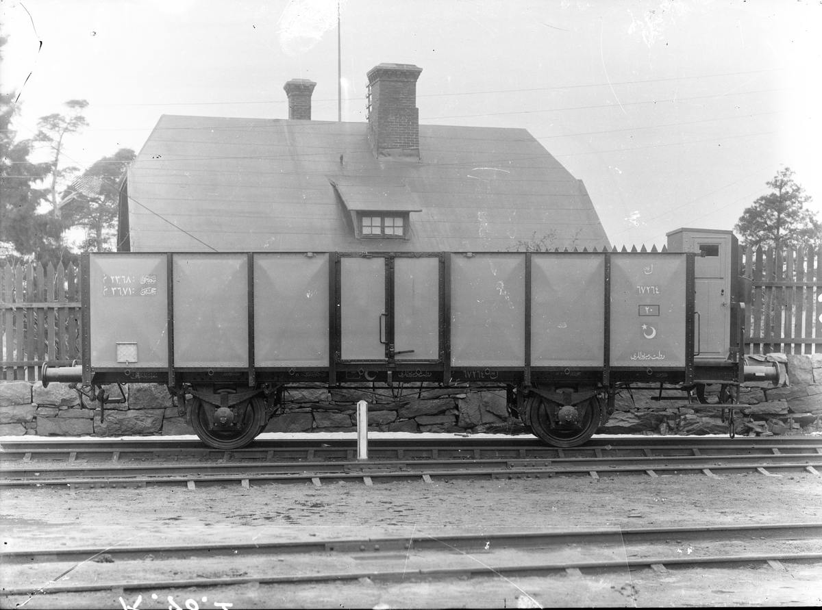 Öppen godsvagn med bromshytt för Persien. Nydqvist & Holm AB, NOHAB