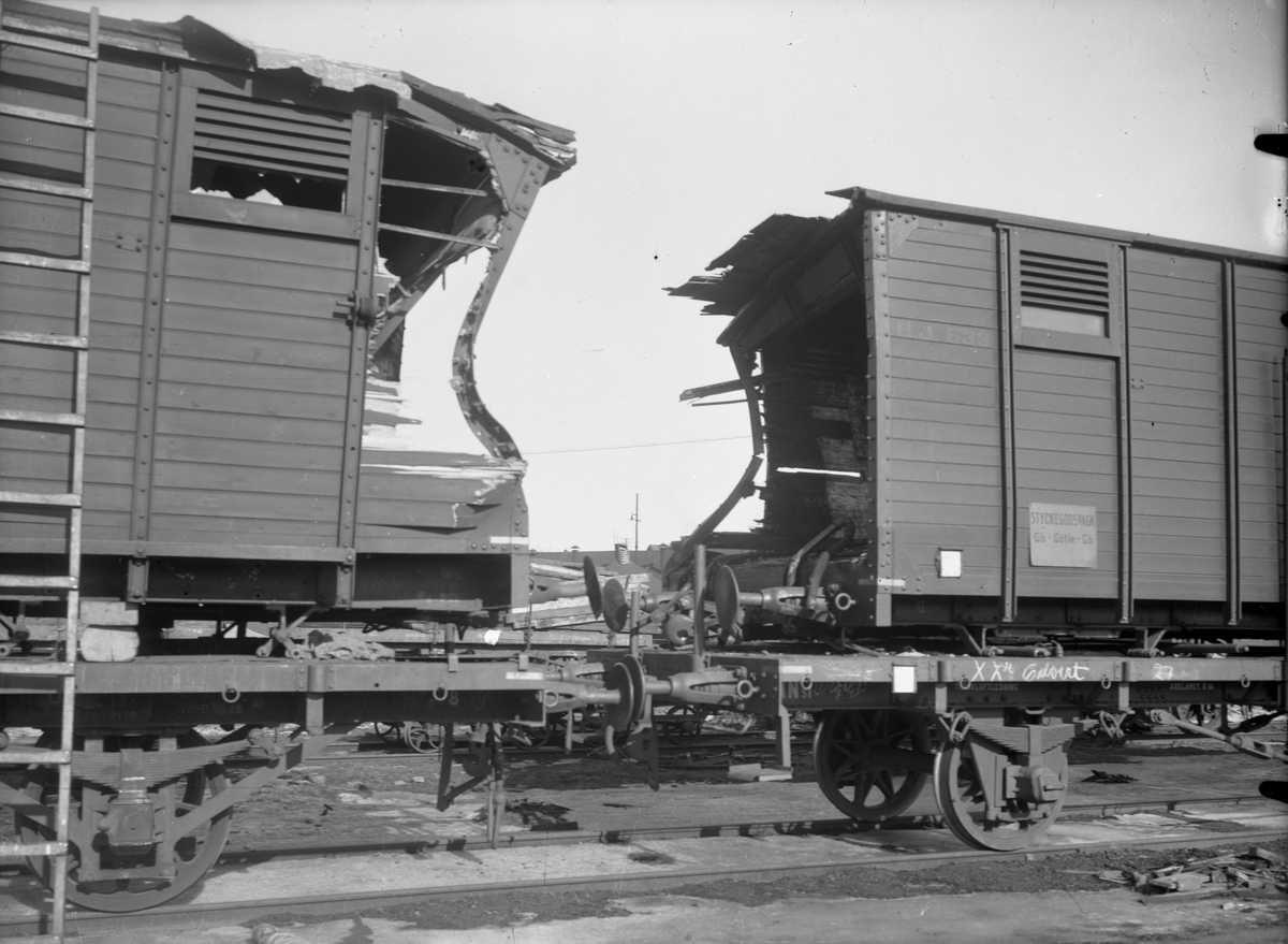 Bergslagernas Järnvägar, BJ G-vagnar, krockskadade och upplastade. Olycka vid Sandviken 1931-03-20