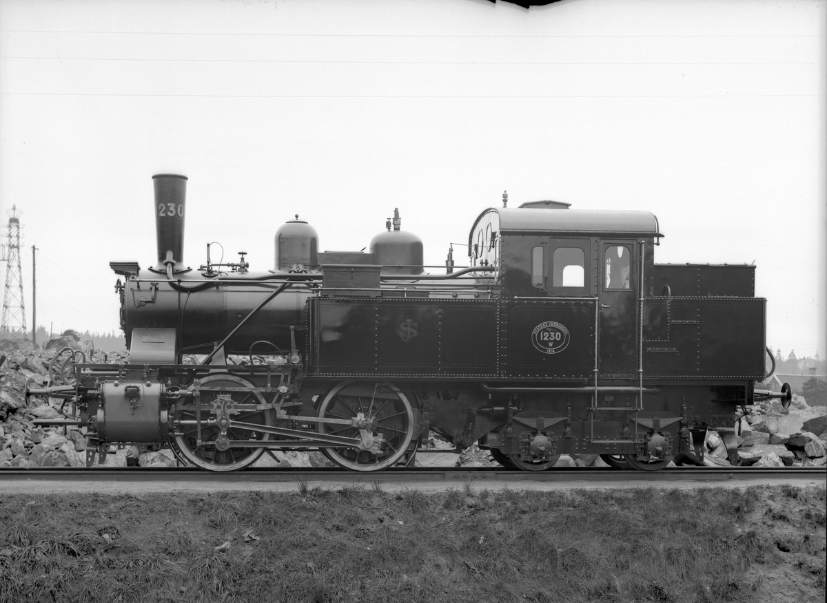 Statens Järnvägar, SJ W 1230. Leveransfoto. Loket tillverkades av Nohab och hade högsta hastighet 65 km i timme. Skrotad 1966 i Vislanda