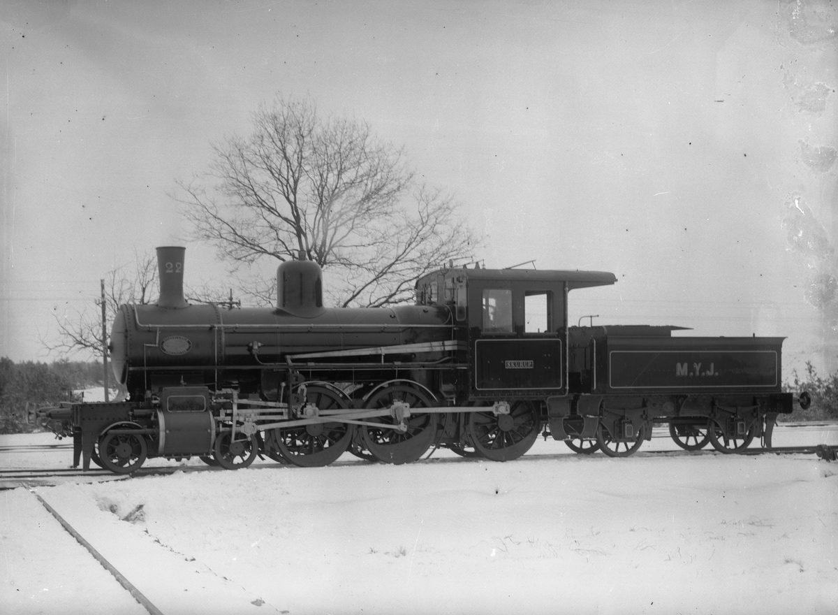 Titel: MYJ lok 22. Leveransfoto. Fick namnet Skurup. Loket tillverkades av Nohab. Skrotat 1933.