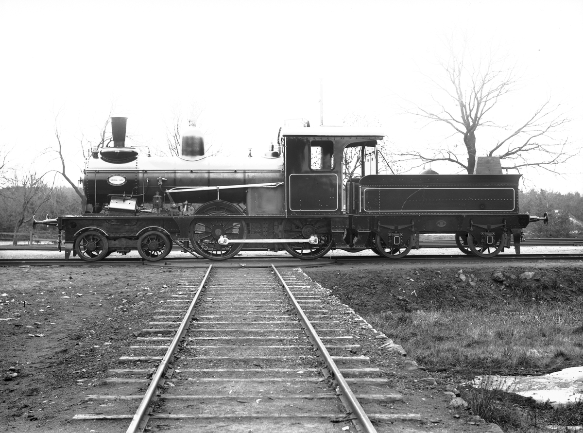 KJ C lok 7. Leveransfoto.Ånglok på vändskiva. Fick namnet Oden. Loket tillverkades av Nohab. Skrotades 1944.