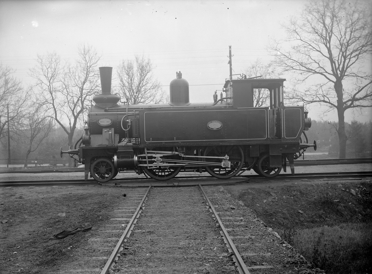 Titel: ÖCJ lok 2. Leveransfoto. Ånglok på vändskiva. Loket tillverkades av Nohab. Skrotades 1939.