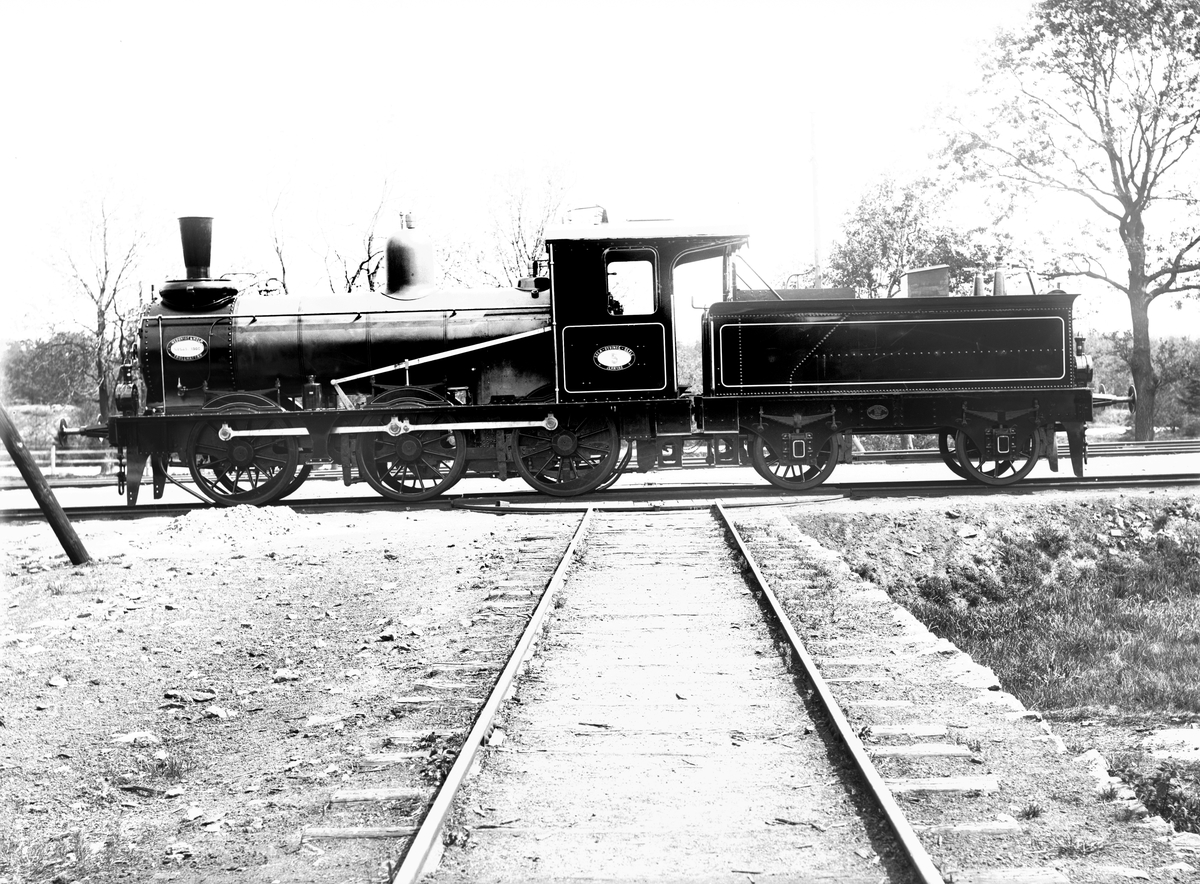 Titel: SGGJ K2 5. Leveransfoto. Ånglok på vändskiva. Loket tillverkades av Nohab. Skrotades1937.