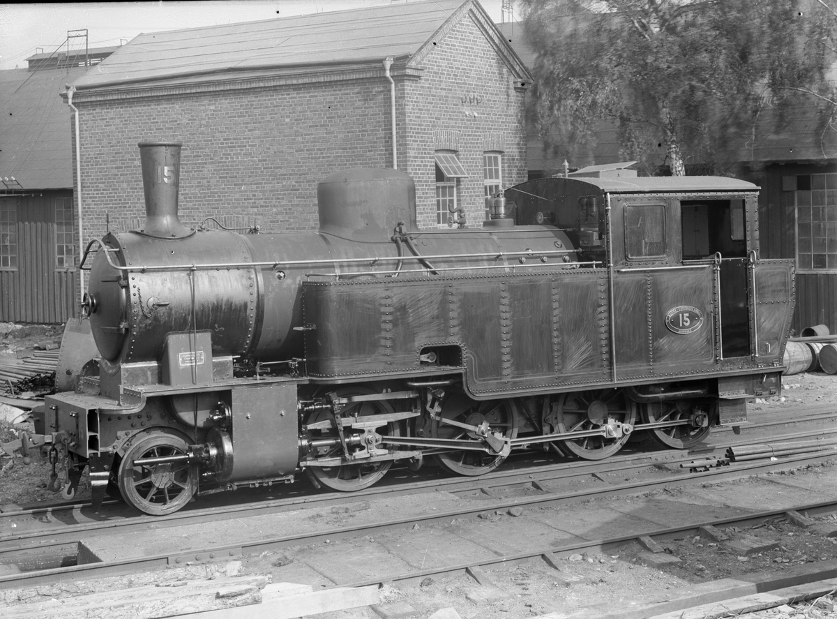 NÖJ lok 15. Leveransfoto. Loket tillverkades av Nohab, tillverkningsnummer 1109. Skrotades 1970.