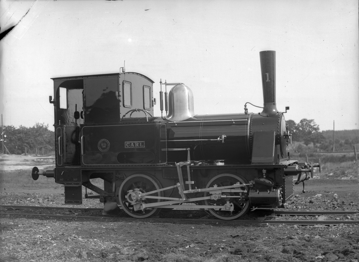 Titel: Carl Jehander entreprenör lok 1. Fick namnet Carl. Loket tillverkat av Nohab. Leveransfoto.