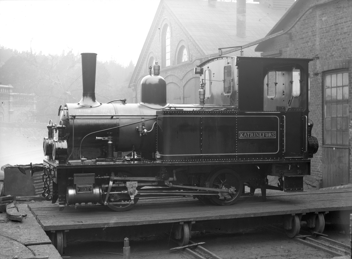 Katrinefors ånglok på vändskivan. Loket tillverkades av Nohab, tillverkningsnummer 805. Leveransfoto.