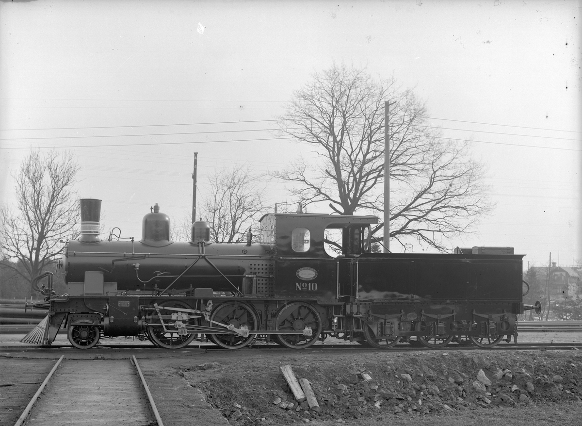 FFJ lok 10. Ånglok på vändskiva. Leveransfoto. Loket tillverkades av Nohab, tillverkningsnummer 910. Loket levererades till Danmark.