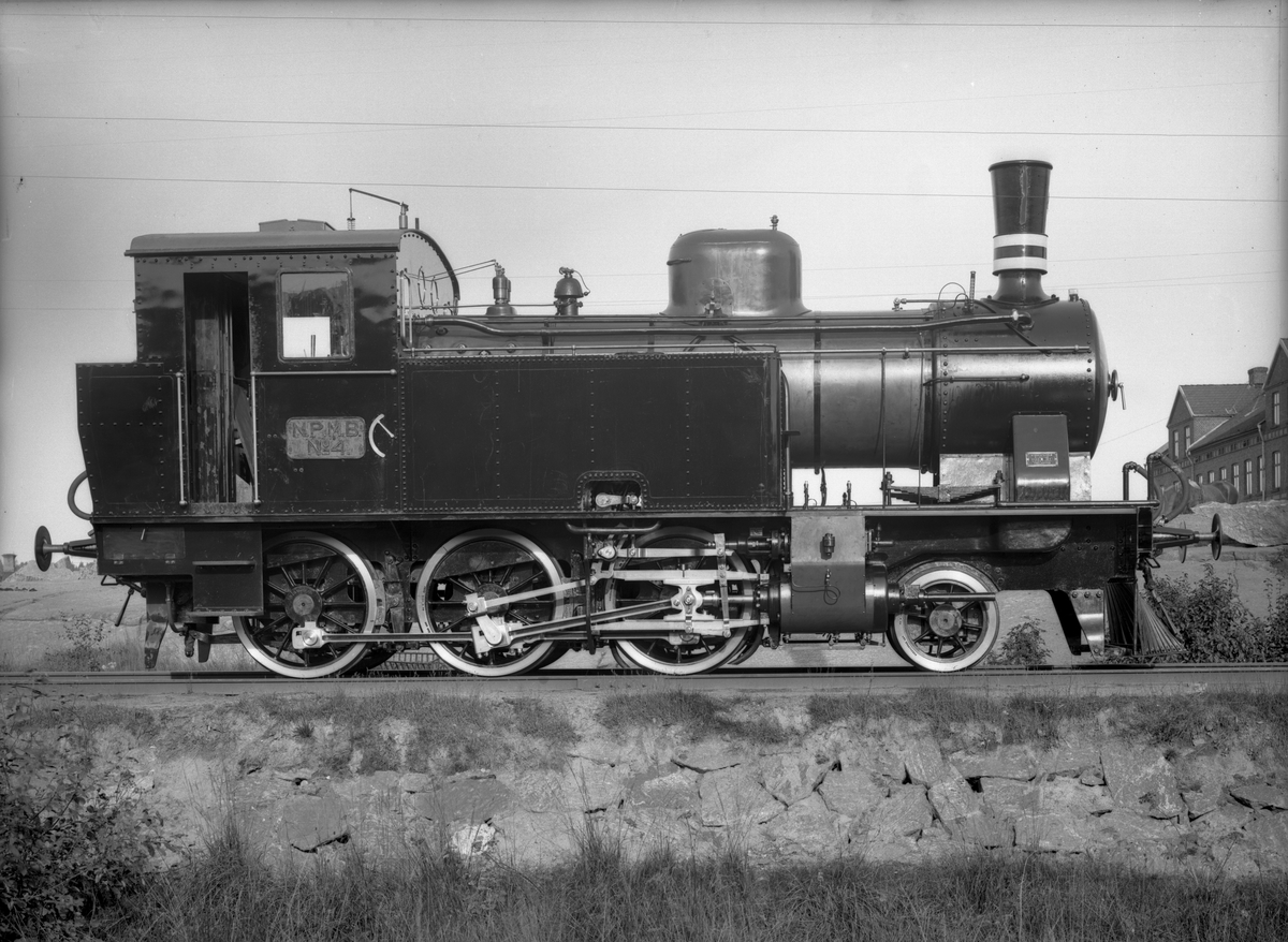 NPMB lok 4. Leveransfoto. Loket tillverkades av Nohab, tillverkningsnummer 1018. Loket levererades till Danmark. Skrotades 1961.
