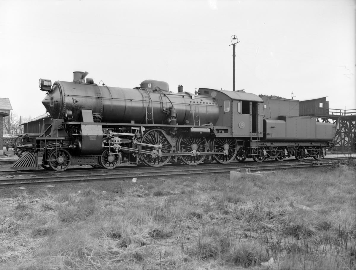 BJ H3s 112. Loket tillverkades 1927 av Nohab, tillverkningsnummer 1797. Bilden är troligen tagen vid leveransen. Såldes 1948 till Sveriges Järnvägar, fick littera SJ A8 1808. 1973 Såldes til Bergslagernas Järnvägssälsskap.