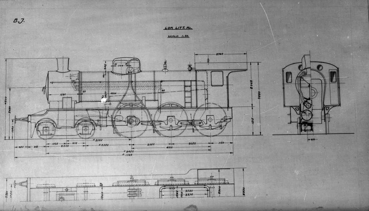 Titel: Ritning BJ ånglok litt H3. Alla BJ H3 lok tillverkades mellan 1910 och 1916.