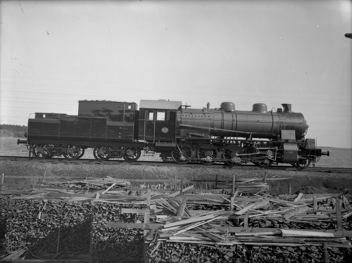 BJ M3s 119. Leveransfoto. Loket tillverkades av Vagn och Maskinfabriksaktiebolaget i Falun, tillverkningsnummer 355. Såldes 1948 till Sveriges Järnvägar, fick littera SJ E11 1849. Skrotades 1976.