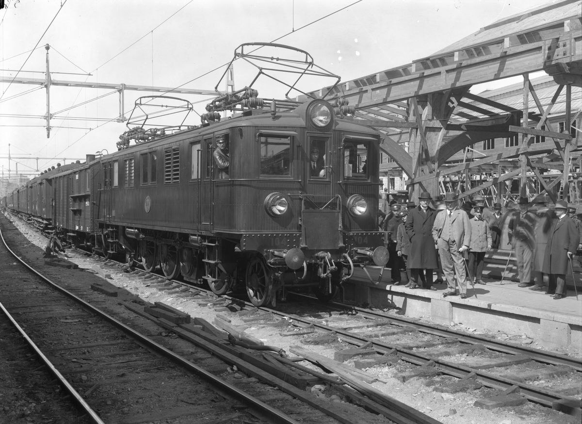 Statens Järnvägar, SJ D 104 med elinvigningståg.