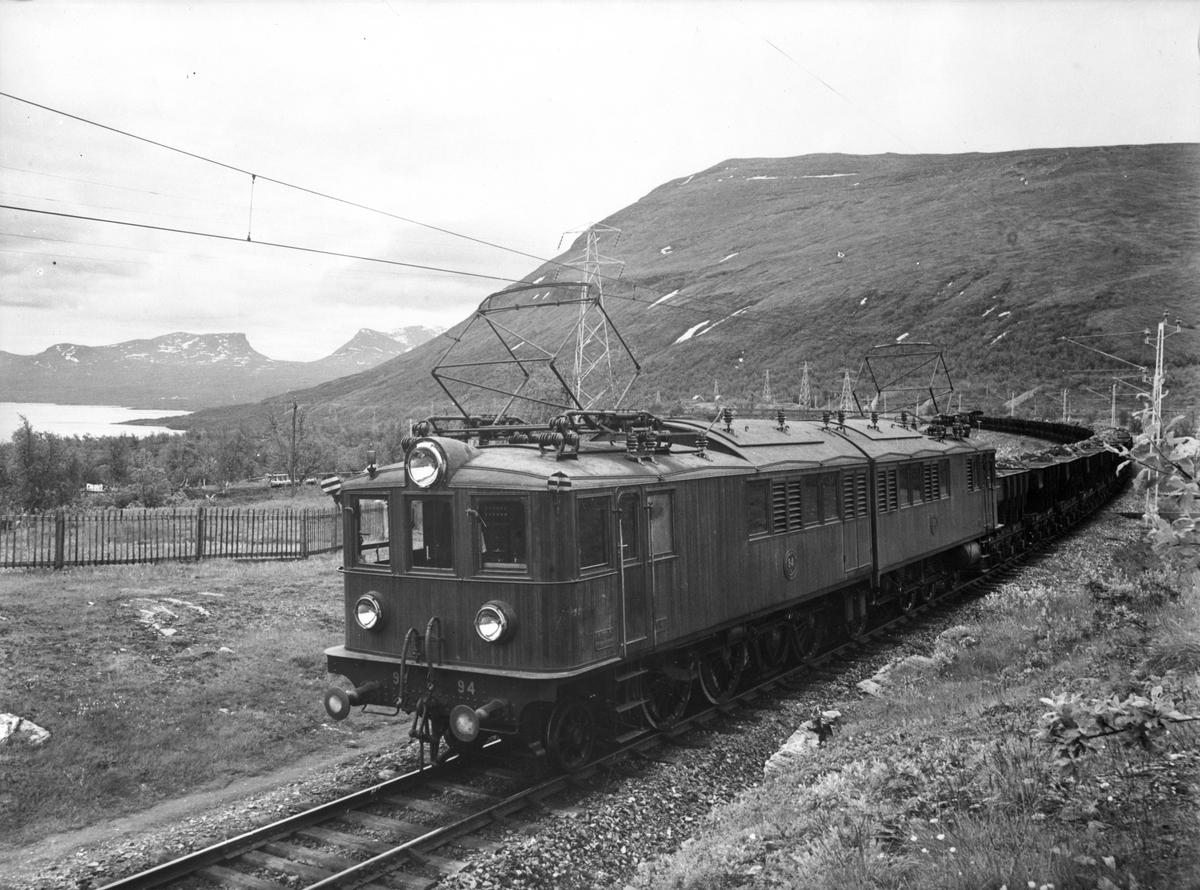 Statens Järnvägar, SJ Of2 94 med malmtåg. I bakgrunden syns Lapporten med sin karaktäristiska profil.