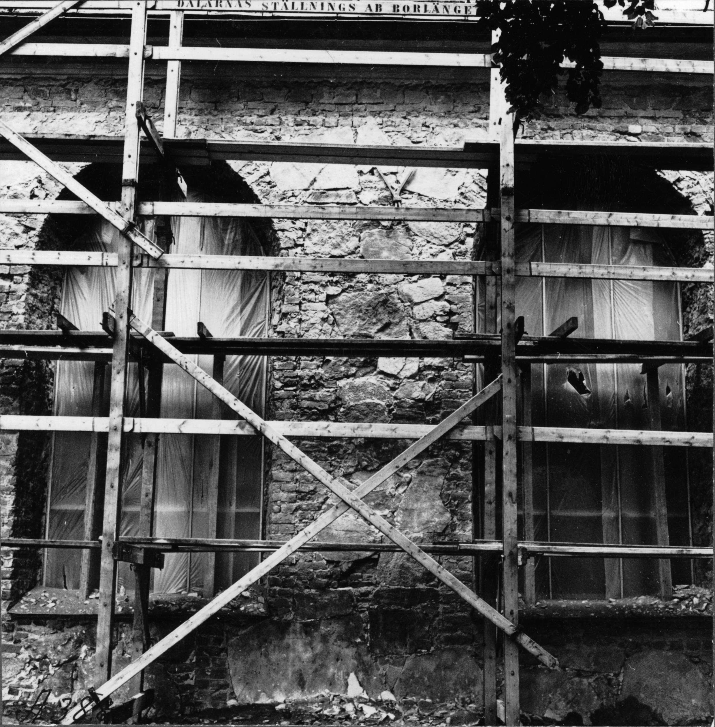 Långhusets sydfasad fotograferad från väster mot öster. Byggnadshistorisk undersökning i samband med omputsning 1963. Foto nr. 31. Dublett, samma bild som nr. 29.
