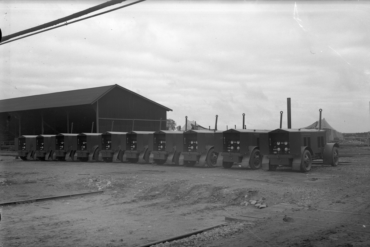 Titel: Maskinvagn m/34. Snett bakifrån med öppna luckor