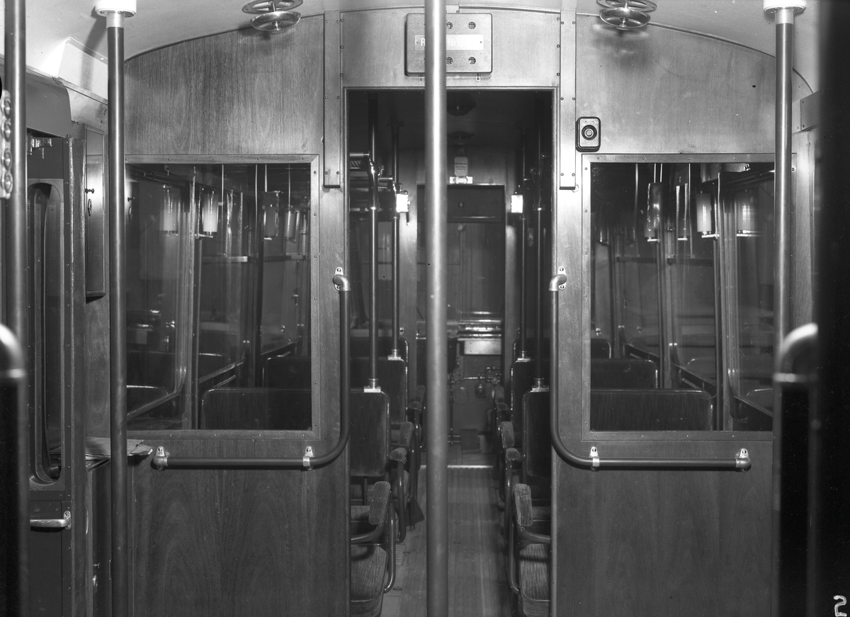 Titel: Interiör Plattform mot B-ände Motorvagn S.S.Lid.J.