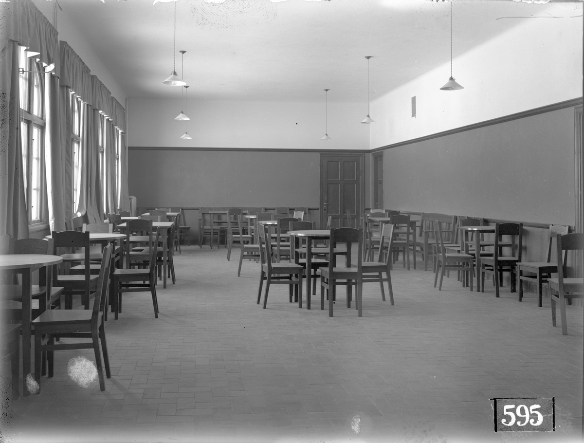 Titel: Matsal med bord och stolar Möbler till Kungl. 1:a Livgrenadjärregementet i Linköping