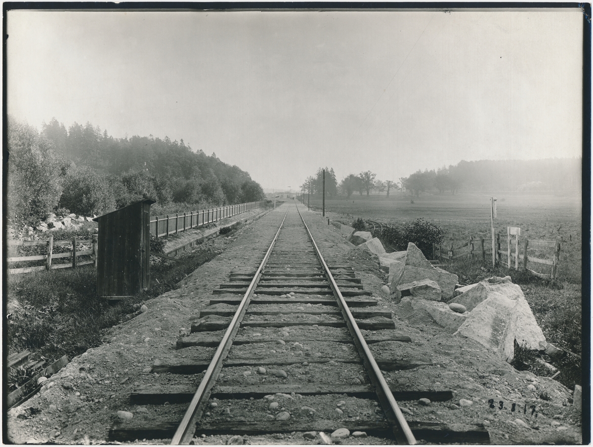 Värtan. Statens Järnvägar, SJ. Liinjen efter höjningen. Statens Järnvägar, SJ. Banan öppnades 1882. Provelektrifiering genomfördes1905 men den lades ner. 1940 elektrifierades banan slutgitligt.