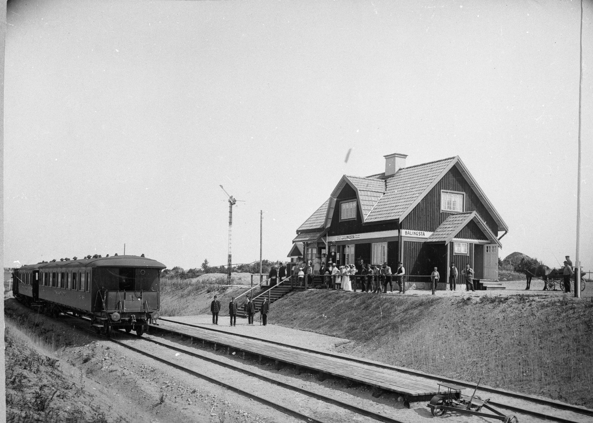 Uppsala - Enköpings Järnväg, UEJ personvagnar på stationen. Plattform i trä