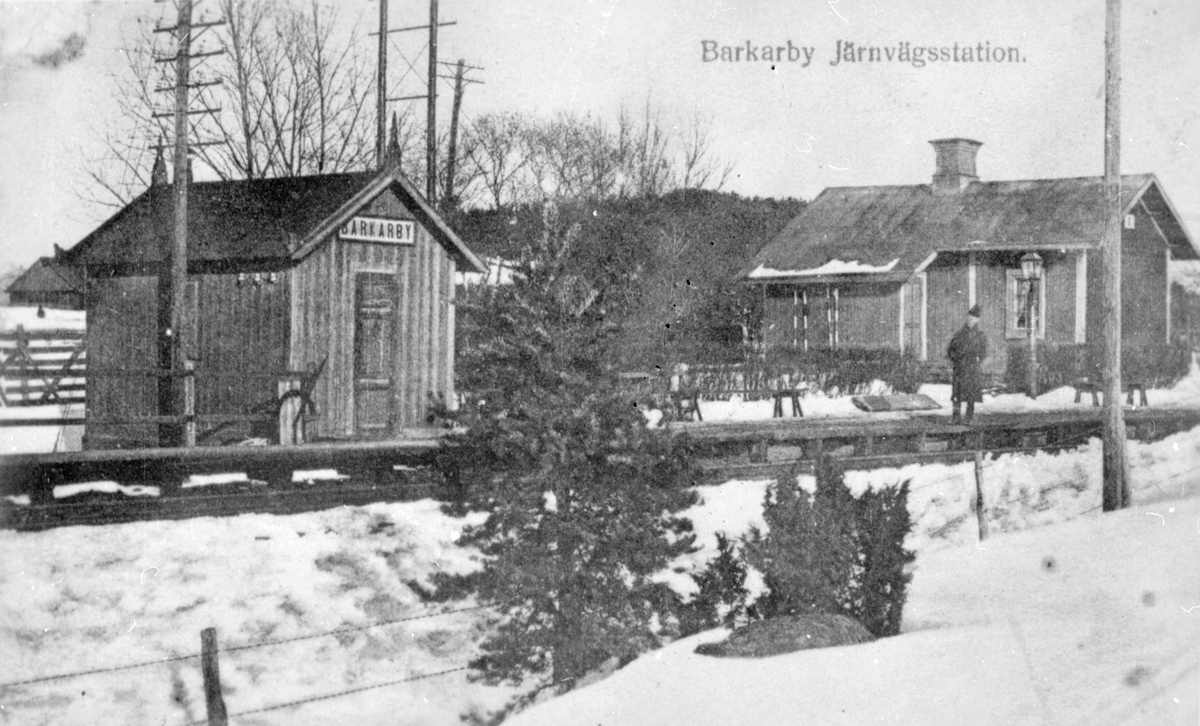 SWB, Stockholm - Västerås - Bergslagens Järnvägar. Det allra första stationshuset till vänster och stinsbostaden till höger i bild