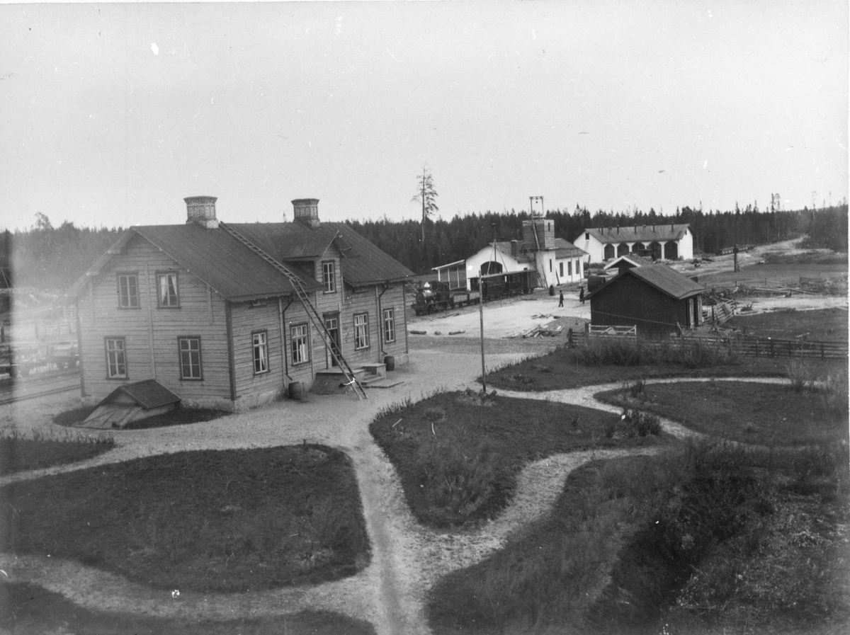 Station Lok 2 "Upland " lastvagnar, personvagnar BC 77-78 resgodsvagnar F 21-22 75 -76