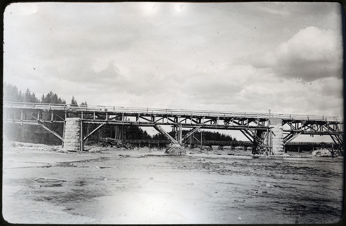 Västra älvfåran, nitställning och transportbrygga vid brobygget över Ume älv.