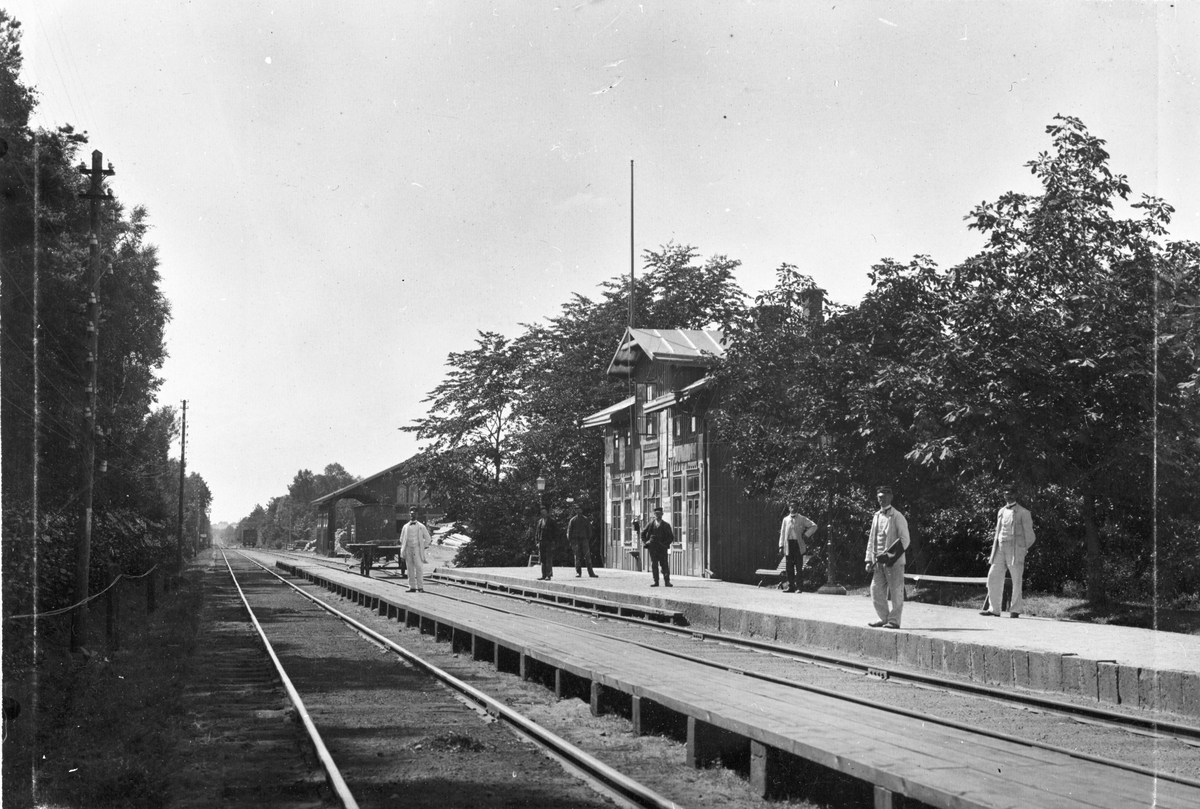Titel: Lagmansholm stationsområde med stationshus och omlastningsmagasin.