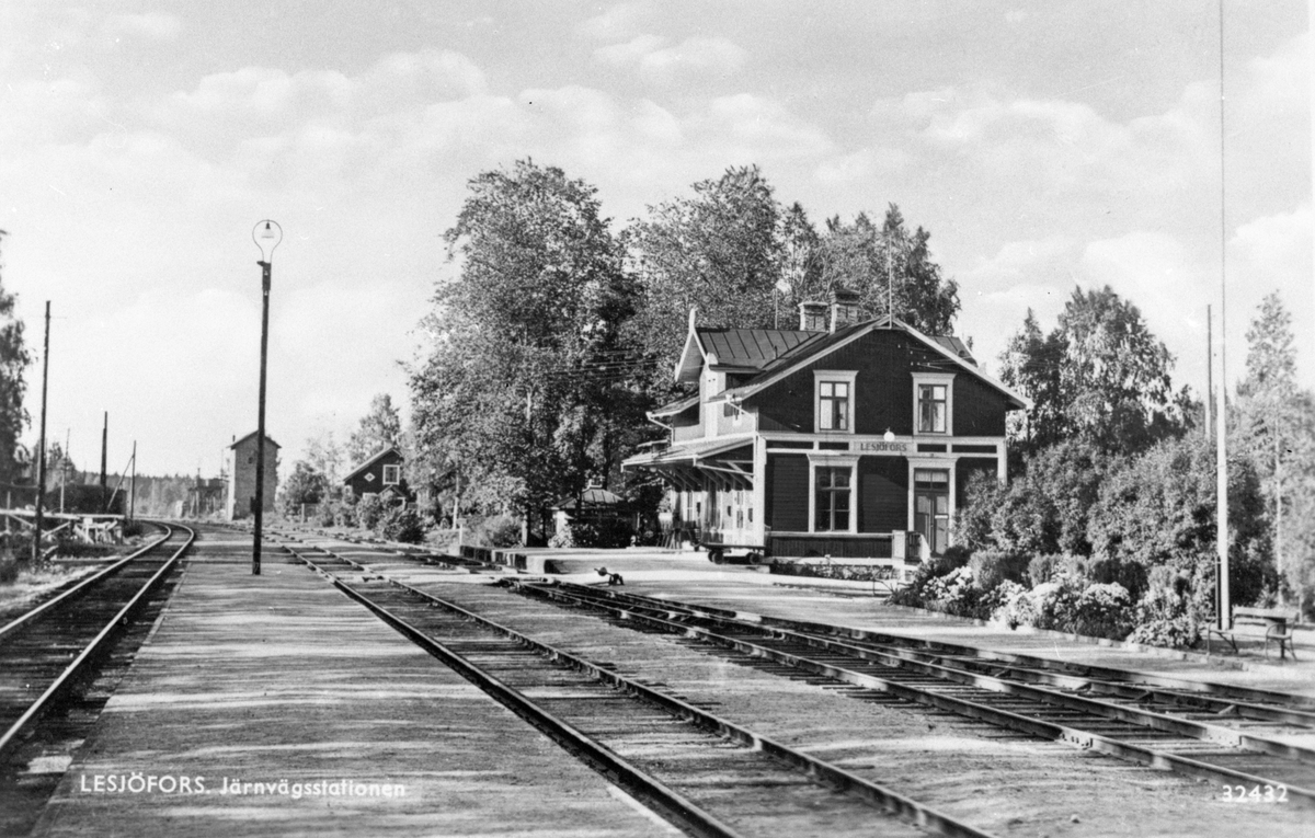 Titel: Lesjöfors stationsområde med vattentorn i bakgrunden.