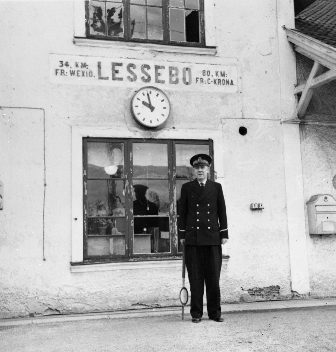Stationsmästare , Å. Nordin .Stationen togs i bruk 1874.Ligger 34 km från Växjö och 8 km från Karlskrona.