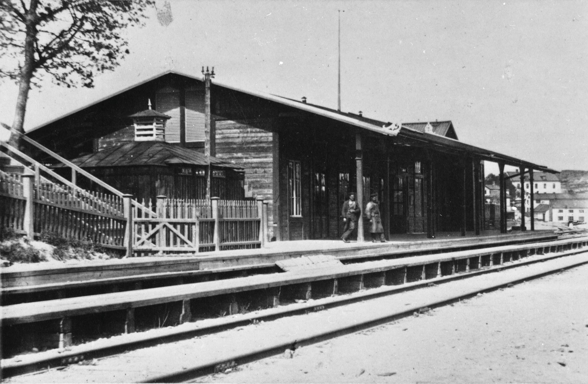 Titel: Gamla stationshuset. Liljeholmens Stationen togs i bruk1860 .